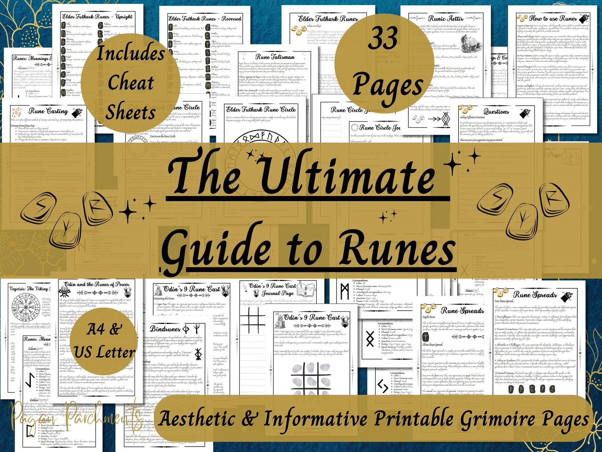 Ultimate Rune Guide, Runes Grimoire Printable, Rune Cheat Sheets, Norse Pagan PDF, Witch BOS Pages, Runic Magic, Elder Futhark Spreads